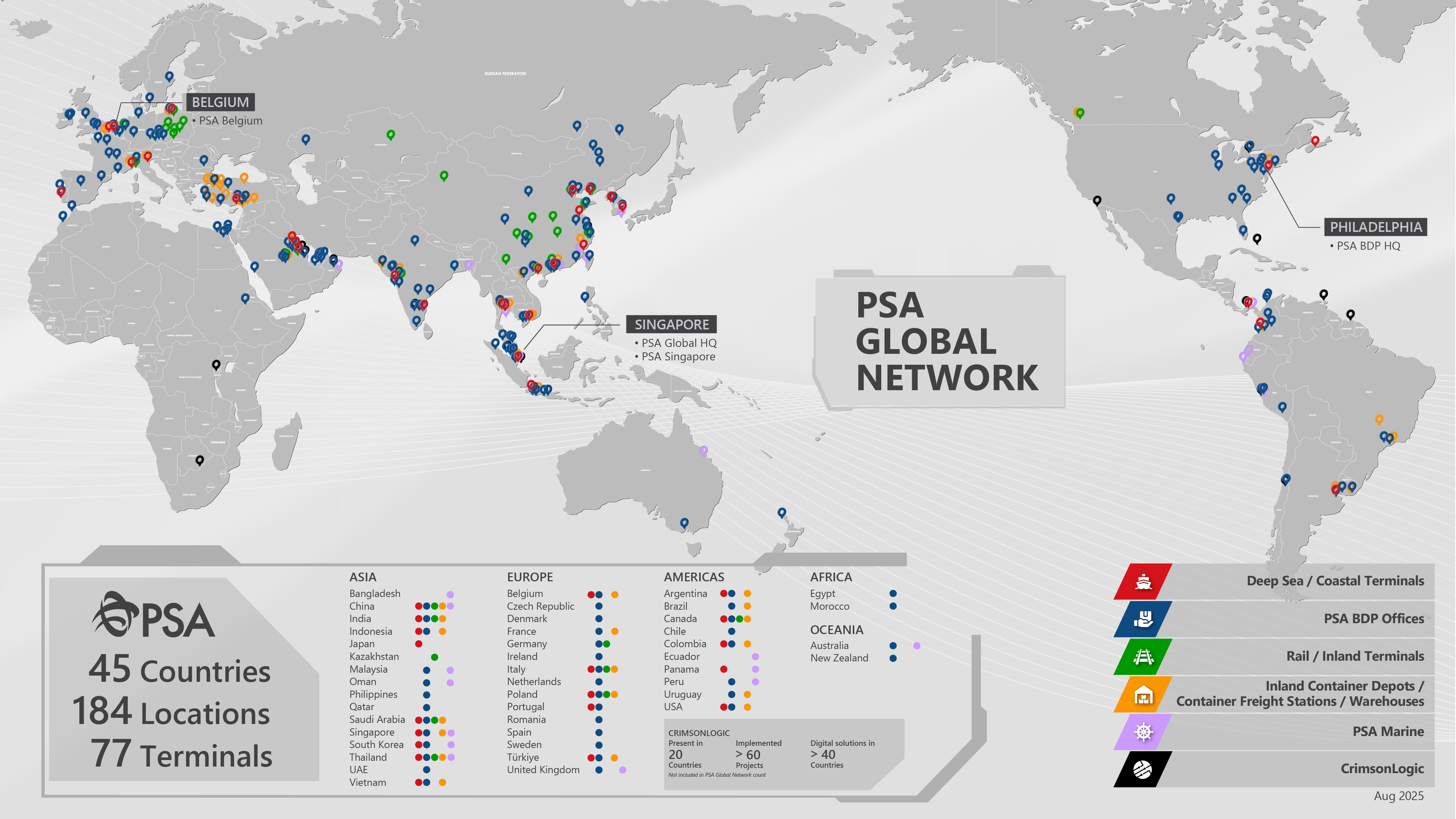 SGP is connected to the world through PSA, a leading global port operator and trusted partner to cargo stakeholders across more than 184 locations in 45 countries.